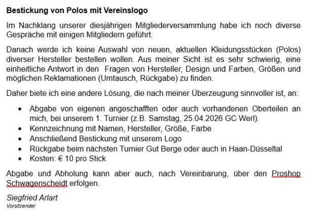 liebe Bergische Golfer*innen,