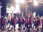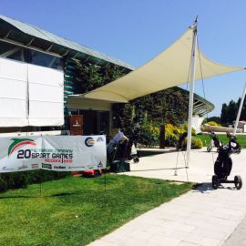 Mit 45 Minuten Verspätung fing endlich die Eröffnungsfeier an, nachdem auch der letzte Offizielle seinen Platz gefunden hatte. Insgesamt haben sich über 6.000 Sportler zu den 20. ECSG 2015 in Riccione angemeldet und davon waren auch sehr viele anwesend. Die 25 Nationen marschierten mit Ländernamen und Flaggen ein und es bot sich recht bald ein buntes Bild. Nach einigen offiziellen Ansprachen wurden unter Begleitung eines Chors und der italienischen Nationalhymne die Europa-, ECSG- und Italien-Fahne gehisst. Am Rande der Eröffnungsfeier habe ich auch die Kölner-Allianz-Golfer um Marco Möller getroffen, deren BSG sich mit ca. 160 Sportlern als erste angemeldet hatten und hierfür geehrt werden sollten.