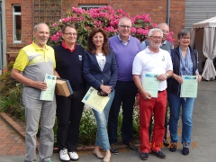Die Bruttosieger Damen (Regina Ehmann, Erdgas Münster, StV 12,2), Bruttosieger Herren (Ladis Üveges, Provinzial Münster, StV 11,5) sowie die Sieger der Klasse A (Hanns Stoffmehl, Erdgas Münster, StV 12,4), Klasse B (Peter Röder, Bergische Golfer, StV 22,0) und Klasse C (Christiane Kortmann, Provinzial Münster, StV 34,1) wurden mit Quali-Urkunden ausgezeichnet und erhielten wie auch die Zweit- und Drittplazierten der drei Nettoklassen wertvolle Präsente. Hans Stoffmehl reichte seine Urkunde an den Zweitplatzierten Peter Troschel (Provinzial Münster, StV 6,4) weiter.