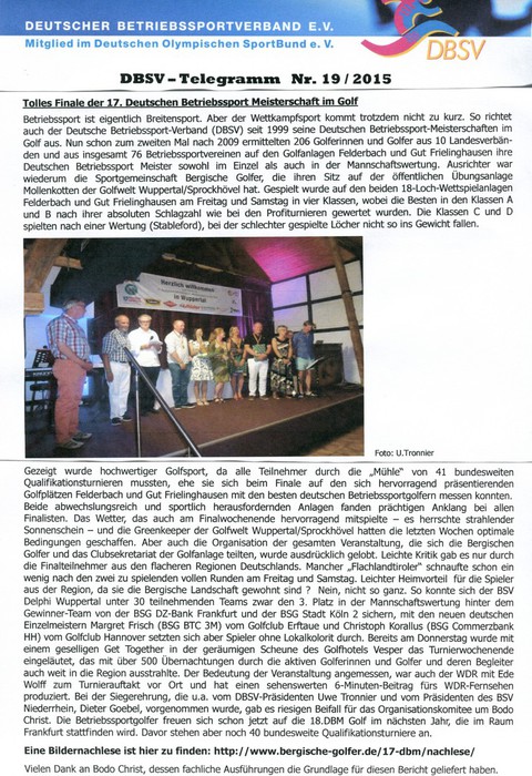 Bilder und ein Fernsehbericht über die Veranstaltung können auch über die Webseite der Bergischen Golfer unter www.bergische-golfer.de/17-dbm/nachlese/ abgerufen werden.