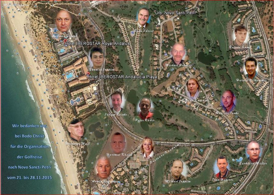 Die Teilnehmer an der Golfreise nach Novo Sancti Petri bedanken sich beim Organisator Bodo Christ.
