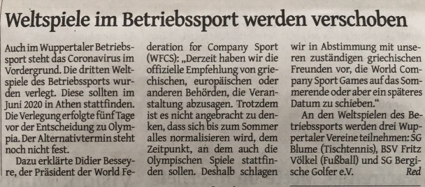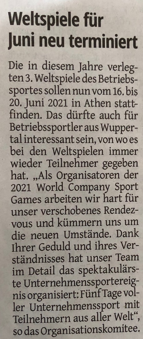Niemand konnte diese Entwicklung bei der Vergabe der jeweiligen Spiele bzw. der Vorbereitung bis zum März 2020 auch nur ansatzweise ahnen. Jeder Ausrichter darf nun hoffentlich mit unserer Geduld, Unterstützung und vor allem Solidarität rechnen, um die beliebten Spiele auch zu den neuen Terminen erfolgreich durchführen zu können.