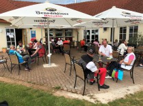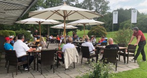 Bei bestem Golfwetter wurden die Teilnehmer*innen ab 10:00 Uhr von unseren Mitgliedern Egbert Stamm und Klaus Rettenbach von Bahn 1 und Bahn 10 auf die Golfrunde geschickt. Im Schnitt kehrten die Vierer-Flights nach 4:45 Std. zum Clubhaus zurück, auf dessen Terrasse dann auch gleich von Iris Ximar und ihrem Restaurant-Team, eines von vier leckeren, zur Auswahl stehenden Essen, serviert wurde.
