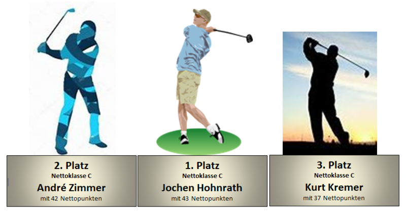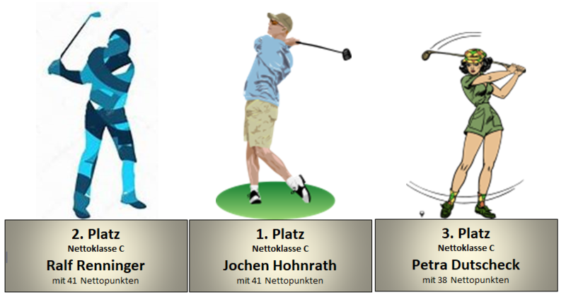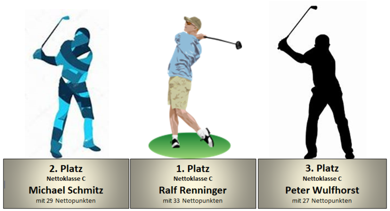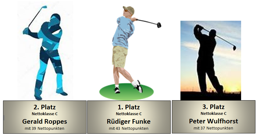 In der HCP-Klasse C vom 28,6 bis ….. sicherte sich Bruno Schultens von der Allianz Köln den 1. Platz mit 35 Nettopunkten, vor der punktgleichen Wibke Wagner von der Provinzial Münster. Über Platz 3 konnte sich mit 33 Nettopunkten Barbara Schmitz von der SG Bergische Golfer freuen.