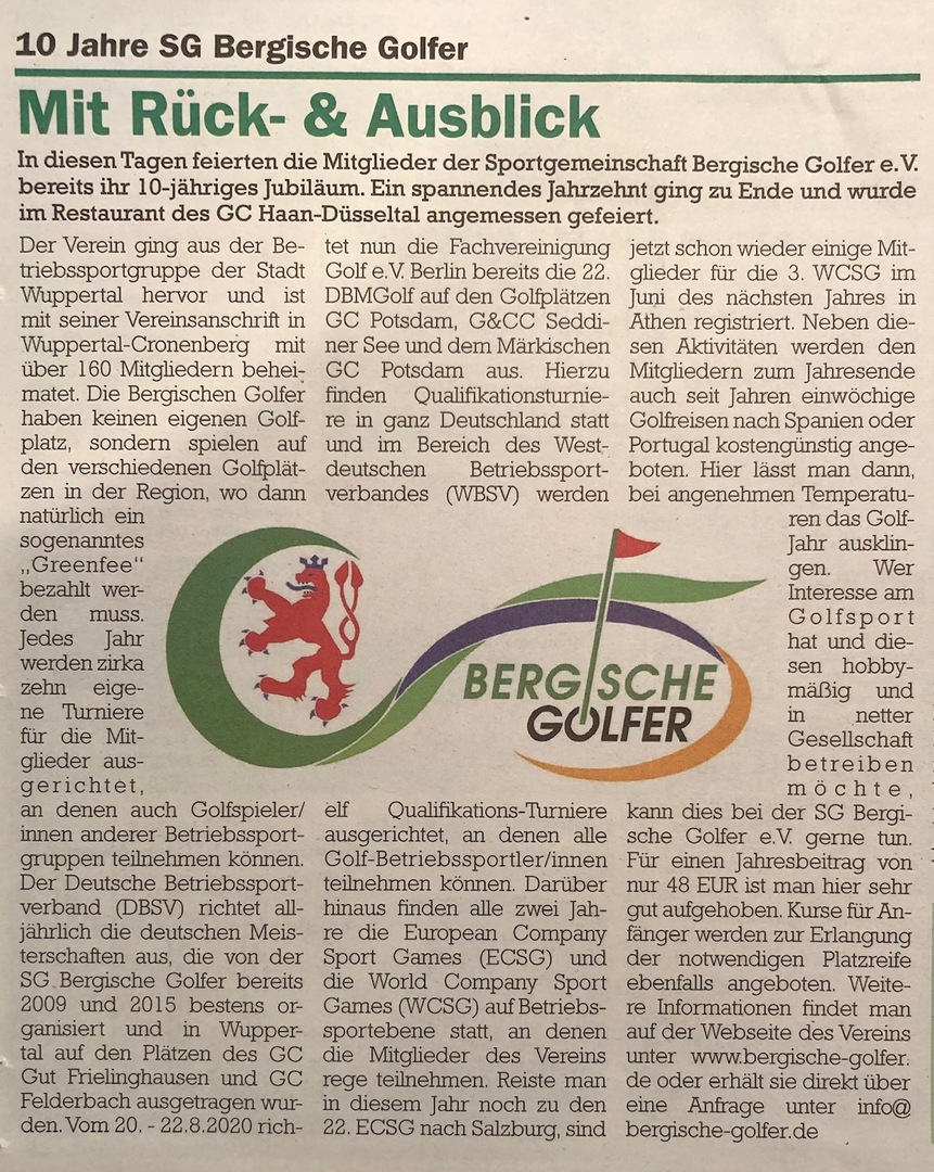 Die Bergischen Golfer wünschen ihm und seinem Team alles Gute und weiterhin viel Erfolg.