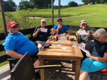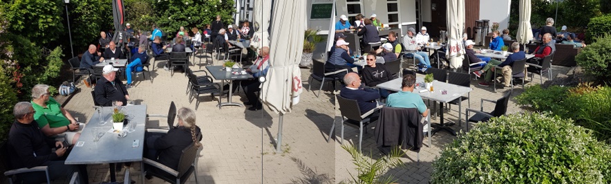 War der Himmel am Morgen, nach dem flächendeckenden Regen am Tag zuvor, noch bedeckt, klarte es im Laufe des Tages immer weiter auf, sodass die Siegerehrung bei strahlendem Sonnenschein auf der Terrasse des GC durchgeführt werden konnte. Hier schmeckten sowohl die vorher ausgesuchten Tellergerichte ebenso gut wie die flüssige Nahrung auf der Terrasse.