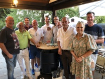 Hatte die Wettervorhersage noch größere Regenmengen vorausgesagt, so ist dieser, bis auf einen kurzen Schauer ausgeblieben. Auch die Siegerehrung konnte auf der Terrasse des Clubs vorgenommen werden. Nachdem sich alle am reichhaltigen Grillbuffet gestärkt hatten und ihren Durst durch das gesponserte „Kölsch“ weiterhin löschten, begann Marco mit der ca. einstündigen, jedoch kurzweiligen und unterhaltsamen Siegerehrung.