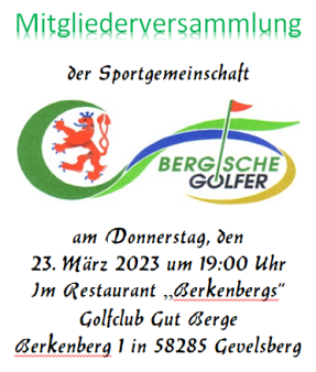 der Vorstand der SG Bergische Golfer e.V. hat beschlossen, statt einer „Weihnachtsfeier“ lieber einmal einen „Neujahres-Empfang“ zu organisieren.