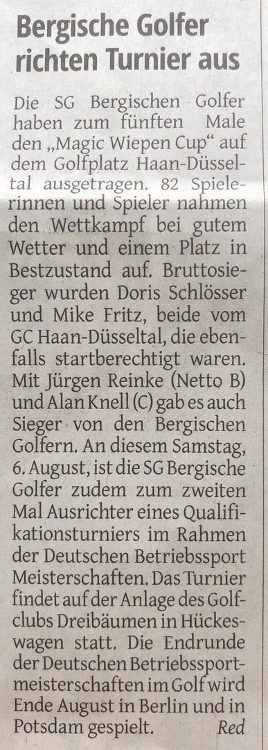 Am 23. 07.2022 wurde auf dem Golfplatz des GC Haan-Düsseltal bereits der "5. MAGIC - WIEPEN - CUP 2022" ausgetragen.
