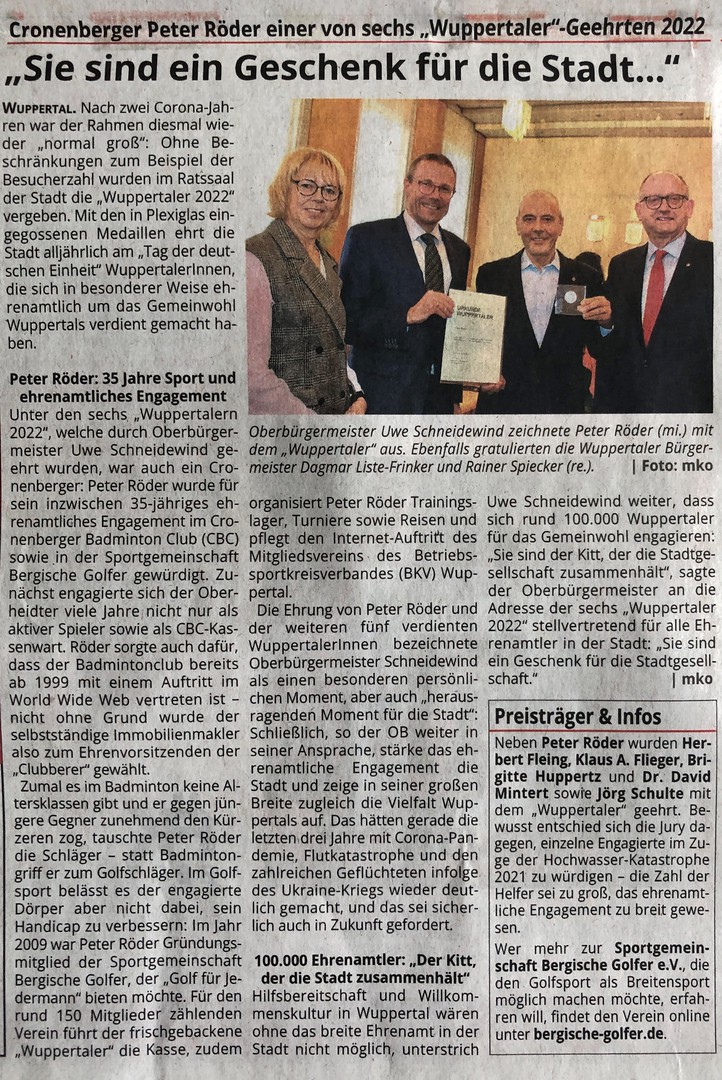 Nochmals die Bitte an alle Mitglieder, die sich zu Golfturnieren anmelden, die auch gleichzeitig Spieltage der WBSV-Mannschafts-Meisterschaft 2022 sind, dies auch dem Mannschaftsführer Peter Röder mitzuteilen.
