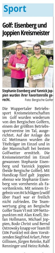 Von den Bergischen Golfern nahmen Jens Wilke (Klasse A), Jürgen Reinke und Richard Wehr (Klasse B), Dirk Harke und Martina Dumke (Klasse C) sowie Ralf Schröder und Ralf Renninger (Klasse D) teil. Gleichzeitig fand für die Begleitpersonen ein Turnier auf dem Golfplatz des GC Bad Honnef statt. Sabine Hessler vertrat dabei die Bergischen Golfer.