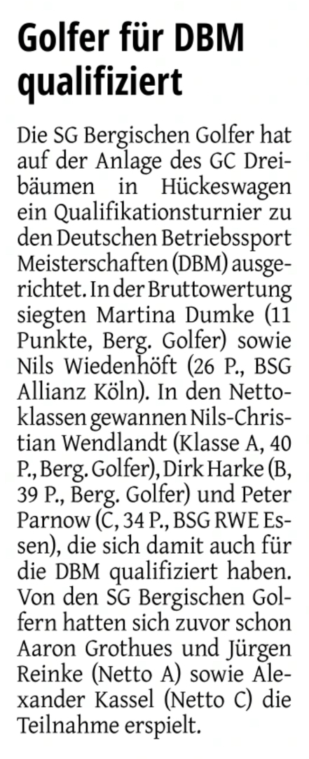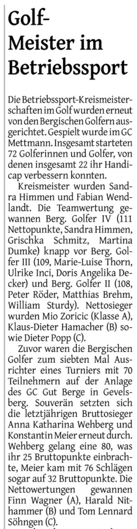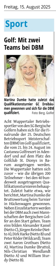 Schon jetzt liegen bei der SG Bergische Golfer Anmeldungen für die folgende Großveranstaltung vor.